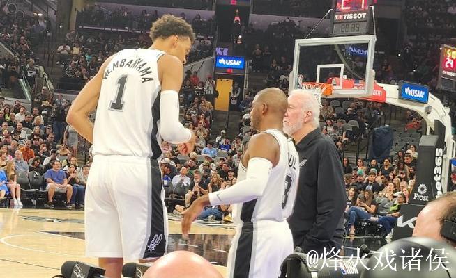 帕克与保罗在场边观战,保罗与文班亚马热情相拥